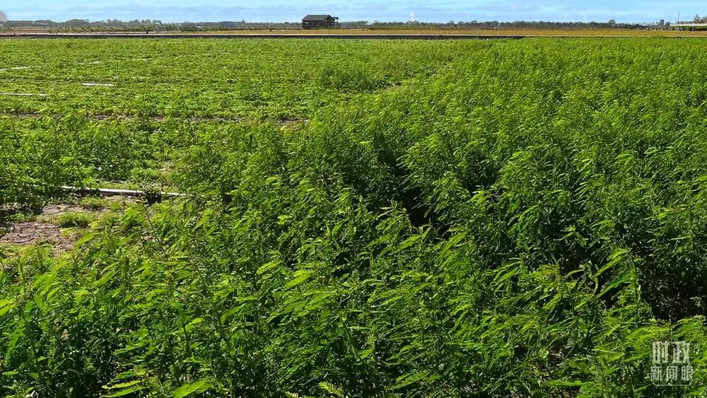 △黃河三角洲農(nóng)高區(qū)。田菁是耐鹽堿綠肥作物,能夠促進(jìn)鹽堿地用養(yǎng)結(jié)合。(總臺(tái)記者韓森拍攝)
