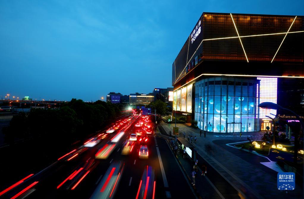 這是從連接虹橋商務區(qū)和虹橋交通樞紐的人行天橋上俯瞰虹橋商務區(qū)(2020年9月10日攝)。新華社記者 方喆 攝