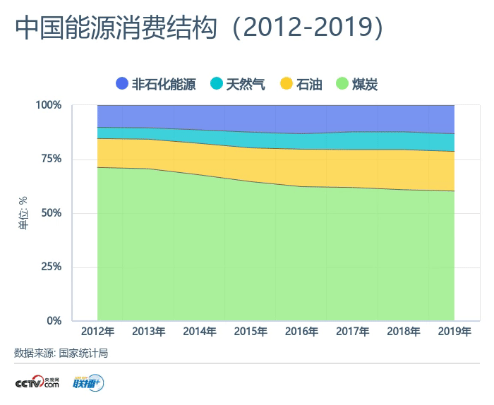數(shù)據(jù)顯示,2019年我國(guó)煤炭消費(fèi)占能源消費(fèi)總量比重為57.7%,比2012年降低10.8個(gè)百分點(diǎn);天然氣、水電、核電、風(fēng)電等清潔能源消費(fèi)量占能源消費(fèi)總量比重為23.4%,比2012年提高8.9個(gè)百分點(diǎn)。