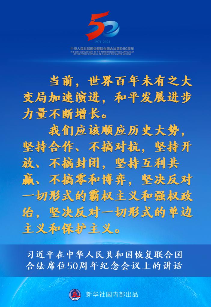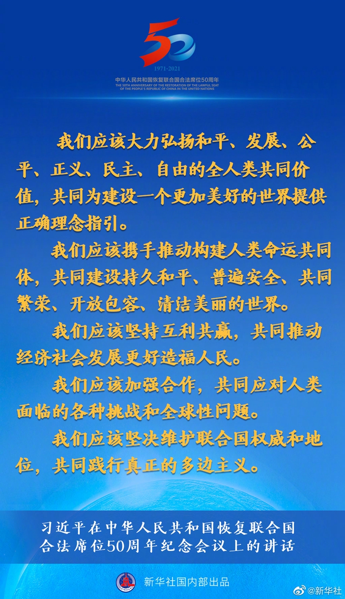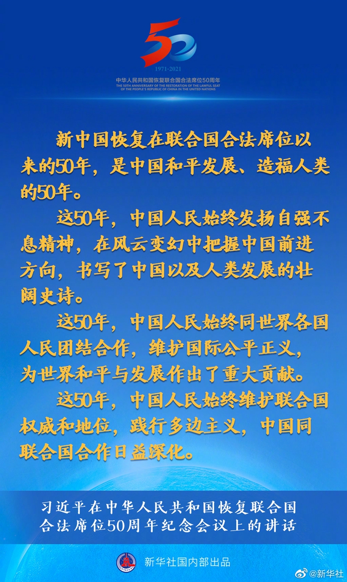 國家主席習近平10月25日在北京出席中華人民共和國恢復聯合國合法席位50周年紀念會議并發(fā)表重要講話。講話有哪些主要內容,一起來看↓