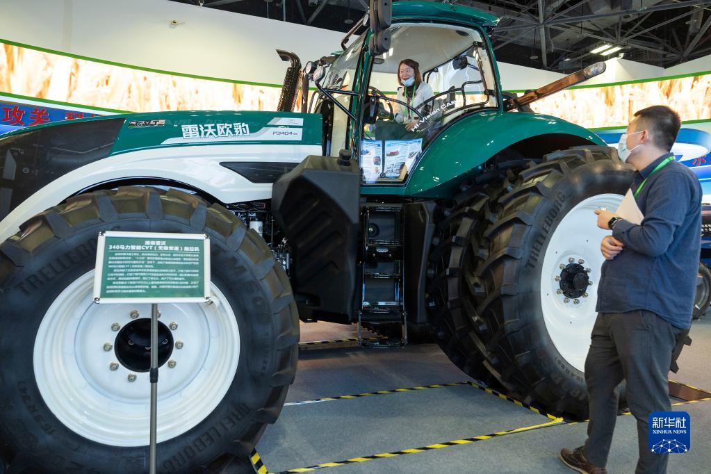 10月21日,在北京展覽館舉行的國(guó)家“十三五”科技創(chuàng)新成就展上,一名觀眾試乘濰柴雷沃340馬力智能CVT(無(wú)級(jí)變速)拖拉機(jī)。新華社記者 才揚(yáng) 攝