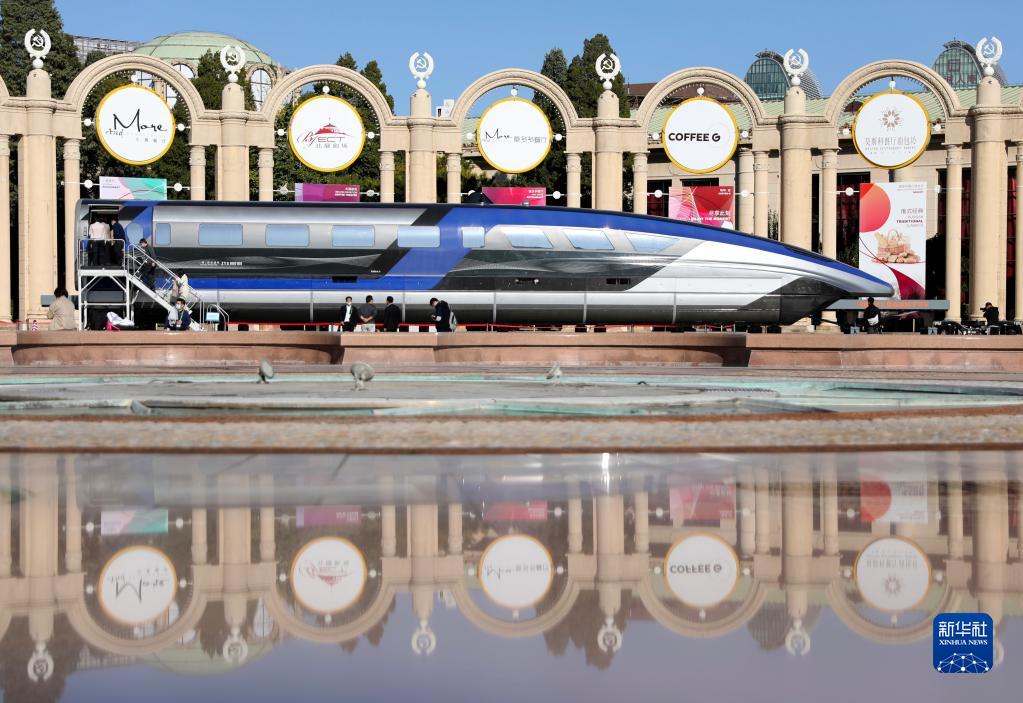 10月21日,觀眾在北京展覽館參觀國(guó)家“十三五”科技創(chuàng)新成就展展出的時(shí)速600公里的高速磁浮列車(chē)。新華社記者 金立旺 攝
