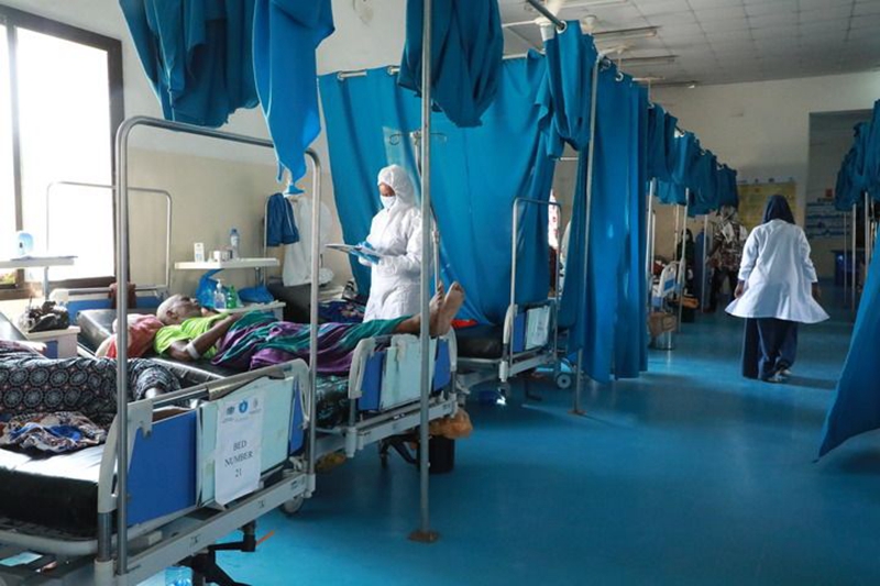 2021年2月24日,新冠患者在索馬里摩加迪沙一家醫(yī)院接受治療。