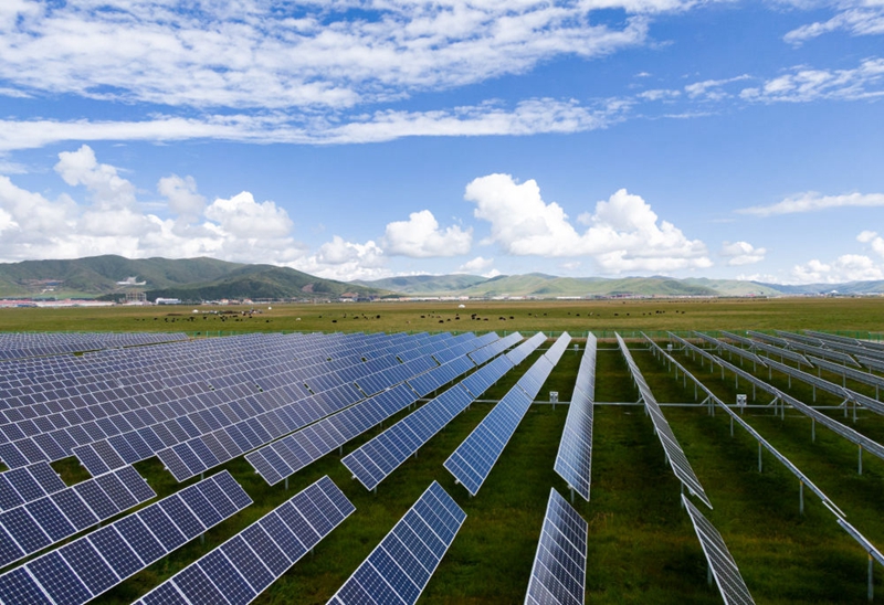 2021年8月14日拍攝的位于四川省阿壩州紅原縣邛溪鎮(zhèn)麻薩村的花海光伏電站。
