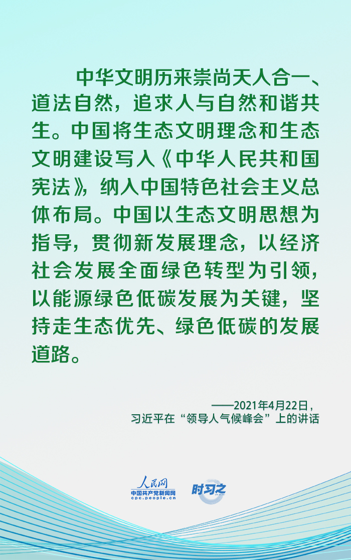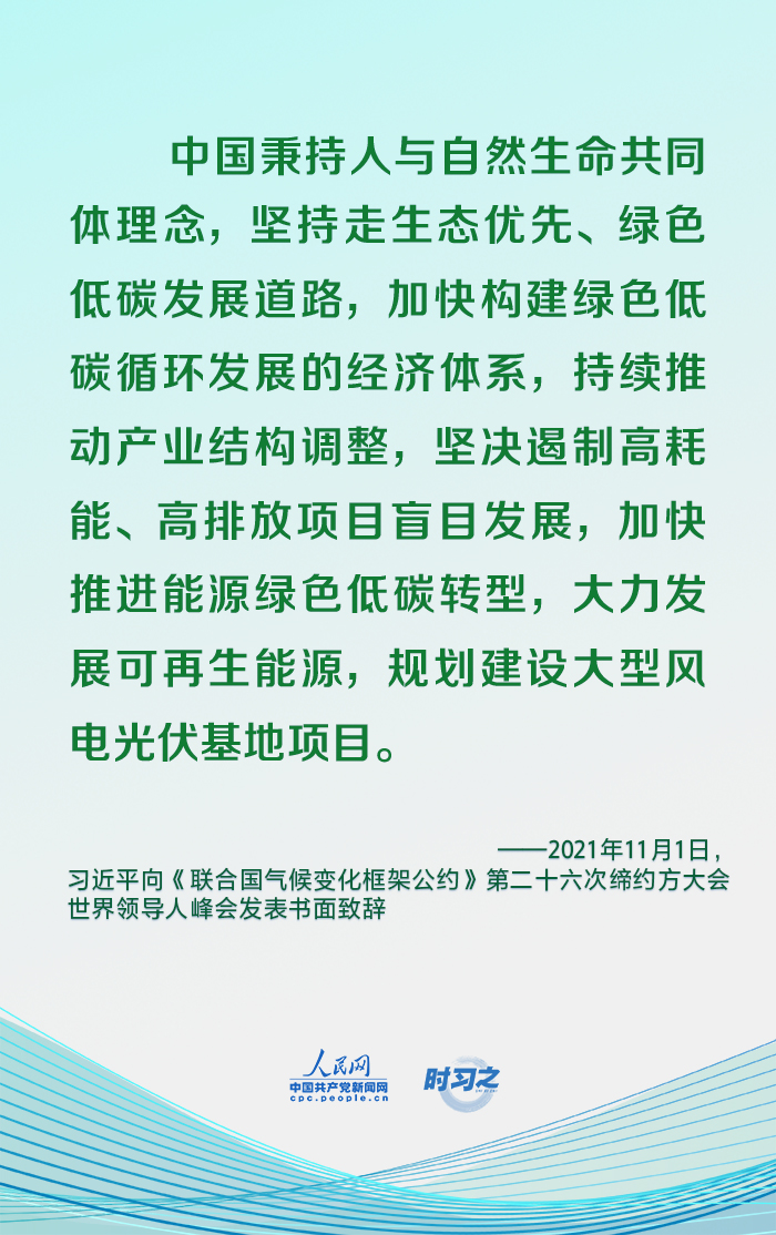 2021年11月1日,國家主席習(xí)近平向《聯(lián)合國氣候變化框架公約》第二十六次締約方大會世界領(lǐng)導(dǎo)人峰會發(fā)表書面致辭。今年以來,習(xí)近平在多個場合一以貫之強(qiáng)調(diào)堅持走生態(tài)優(yōu)先、綠色低碳發(fā)展道路。