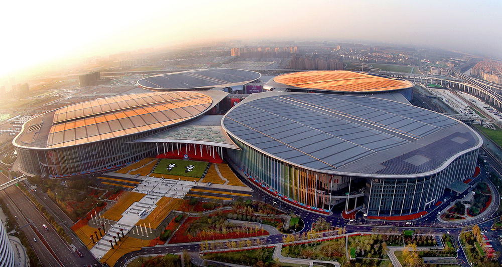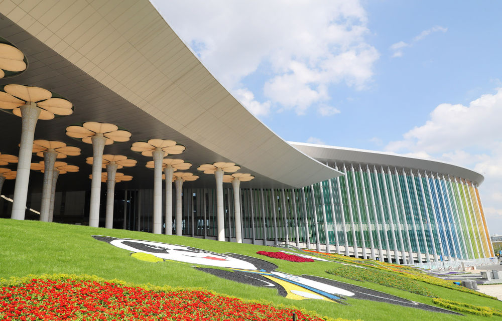 ↑2020年11月2日拍攝的上海國家會展中心南廣場。