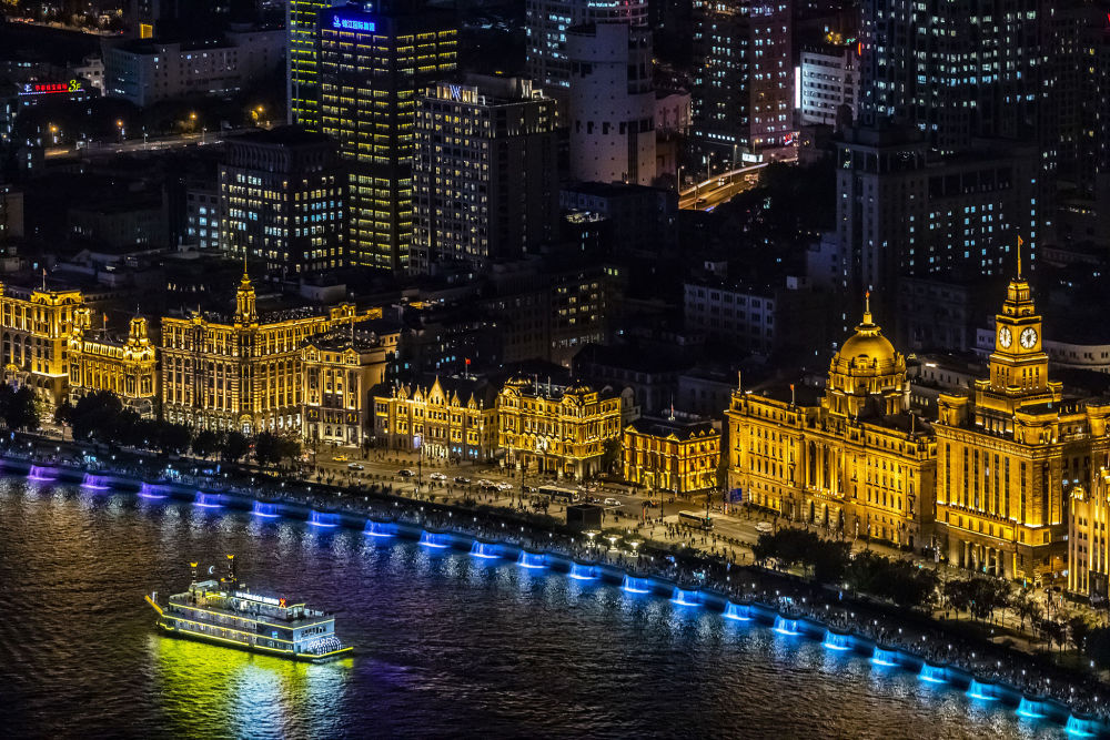 ↑2018年11月2日,游船經(jīng)過上海外灘建筑群。