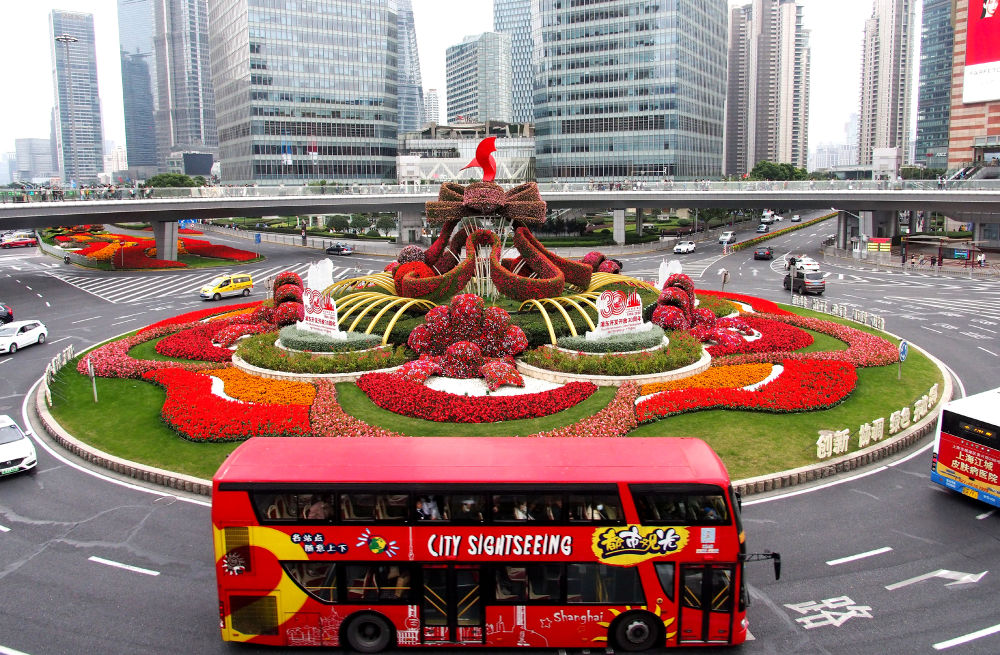 ↑2020年11月1日,一輛巴士經(jīng)過上海浦東陸家嘴環(huán)島。