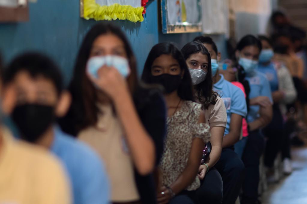 11月4日,在位于委內(nèi)瑞拉首都市中心的“何塞·安潔爾·阿拉莫”中學(xué),學(xué)生們在排隊接種中國疫苗。薩爾戈多攝