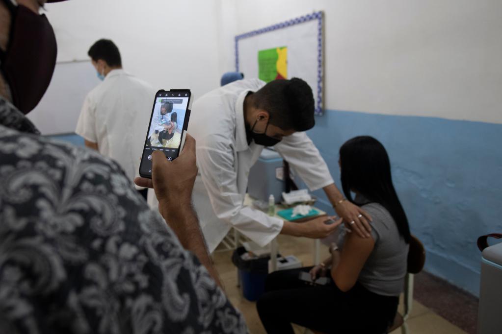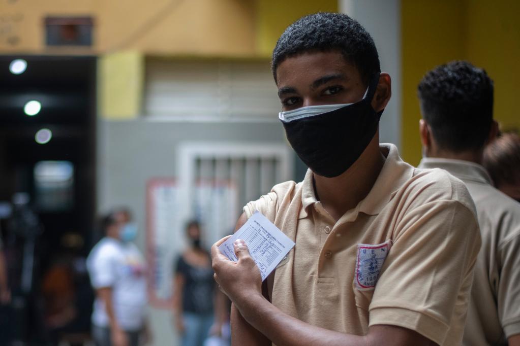 11月4日,在位于委內(nèi)瑞拉首都市中心的“何塞·安潔爾·阿拉莫”中學(xué),一名學(xué)生們在接種中國疫苗。薩爾戈多攝