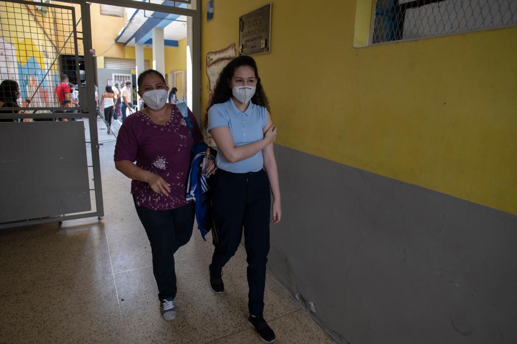 11月4日,在位于委內(nèi)瑞拉首都市中心的“何塞·安潔爾·阿拉莫”中學(xué),一名學(xué)生們接種完疫苗后離開。薩爾戈多攝