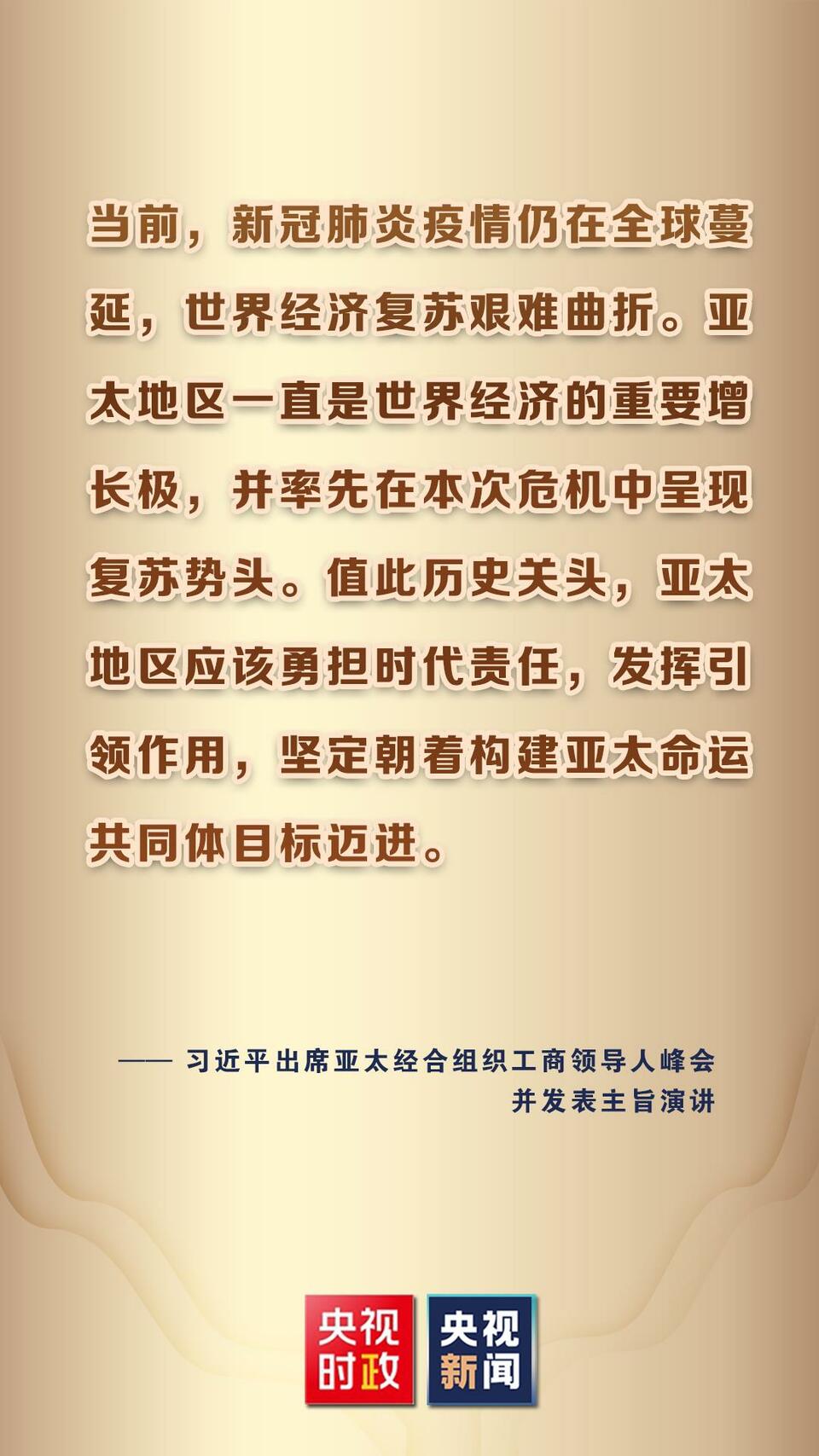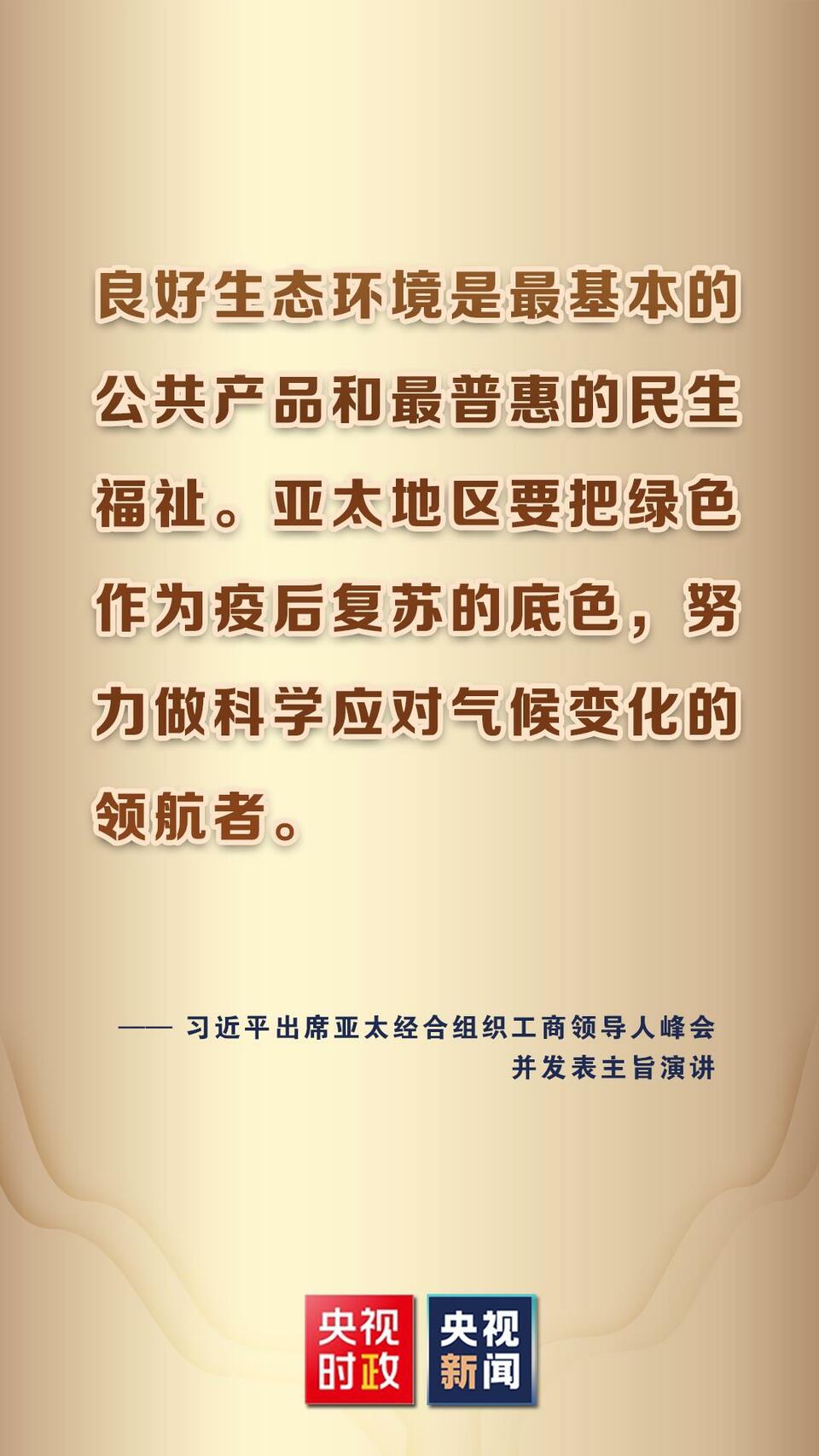 11月11日,國家主席習近平應邀在北京以視頻方式向亞太經合組織工商領導人峰會發(fā)表題為《堅持可持續(xù)發(fā)展 共建亞太命運共同體》的主旨演講。