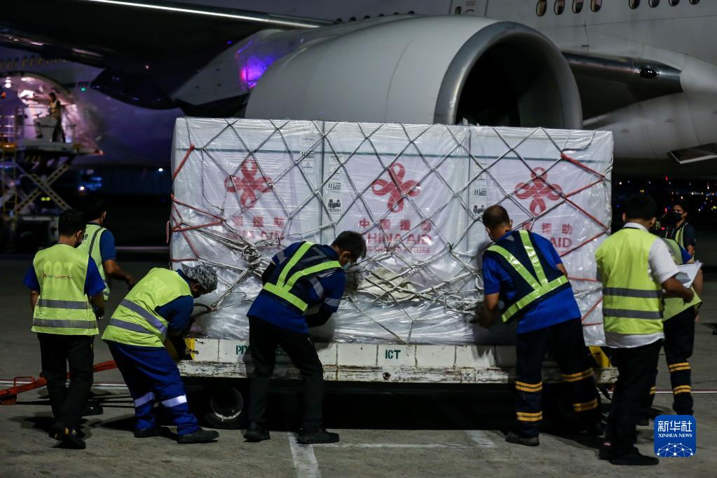 10月24日,工作人員在菲律賓馬尼拉國際機場運輸中國政府援助菲律賓的第四批新冠疫苗。新華社發(fā)(烏馬利攝)