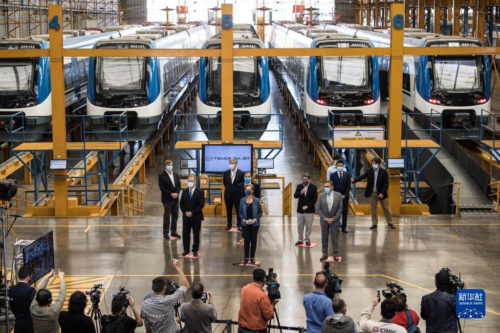 3月23日,智利交通和電信部長烏特(中)在首都圣地亞哥參觀中國軌道列車,稱贊這批車輛的到來是近年來智利“鐵路發(fā)展最重要的里程碑之一”。新華社發(fā)(豪爾赫·比列加斯攝)