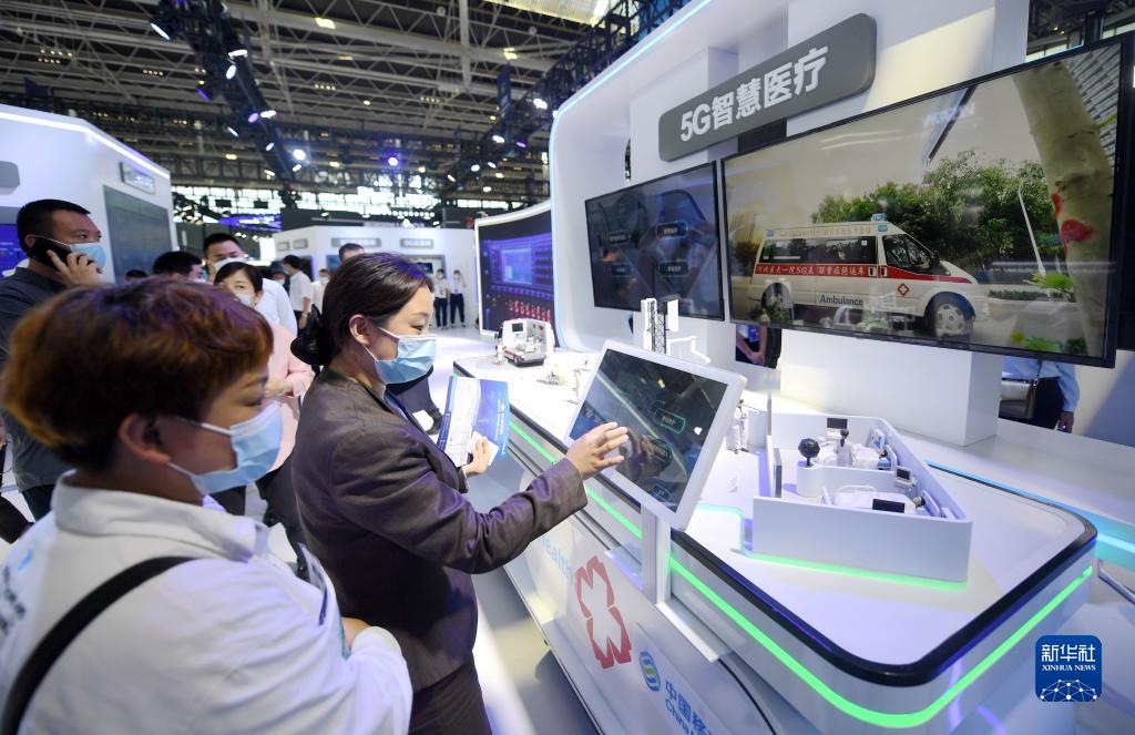 9月7日,參觀者在2021中國國際數(shù)字經濟博覽會參觀5G智慧醫(yī)療展臺。新華社記者 王曉 攝