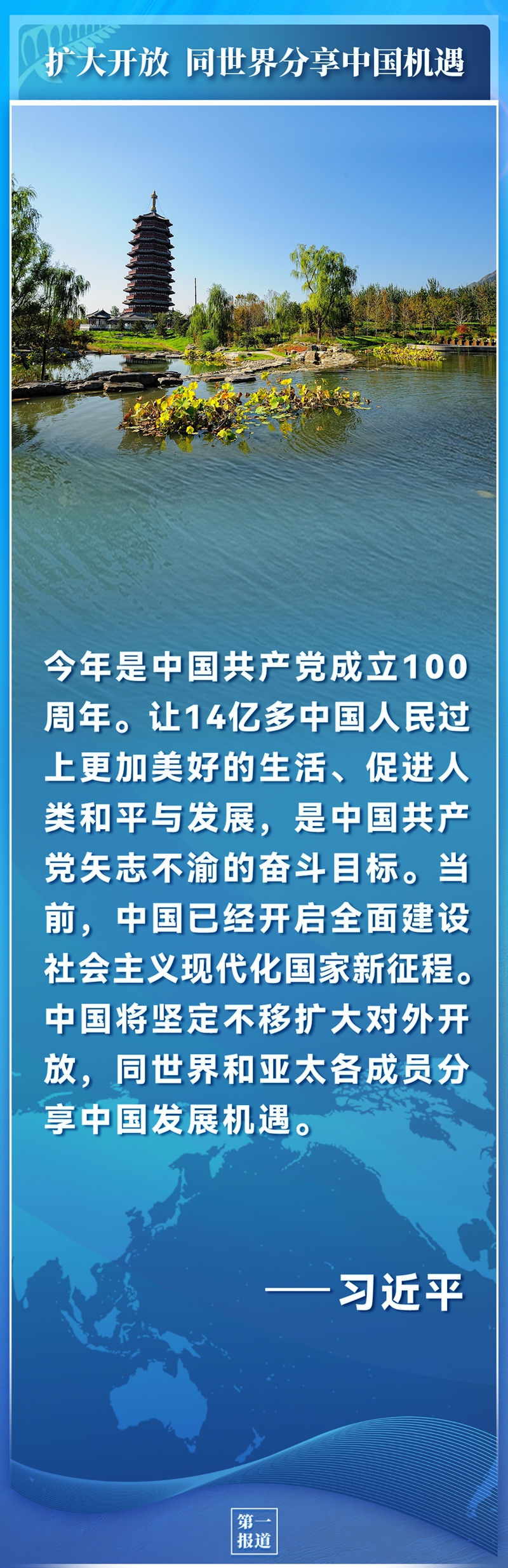 今年是中國共產(chǎn)黨成立100周年。讓14億多中國人民過上更加美好的生活、促進人類和平與發(fā)展,是中國共產(chǎn)黨矢志不渝的奮斗目標。當前,中國已經(jīng)開啟全面建設社會主義現(xiàn)代化國家新征程。中國將堅定不移擴大對外開放,同世界和亞太各成員分享中國發(fā)展機遇。