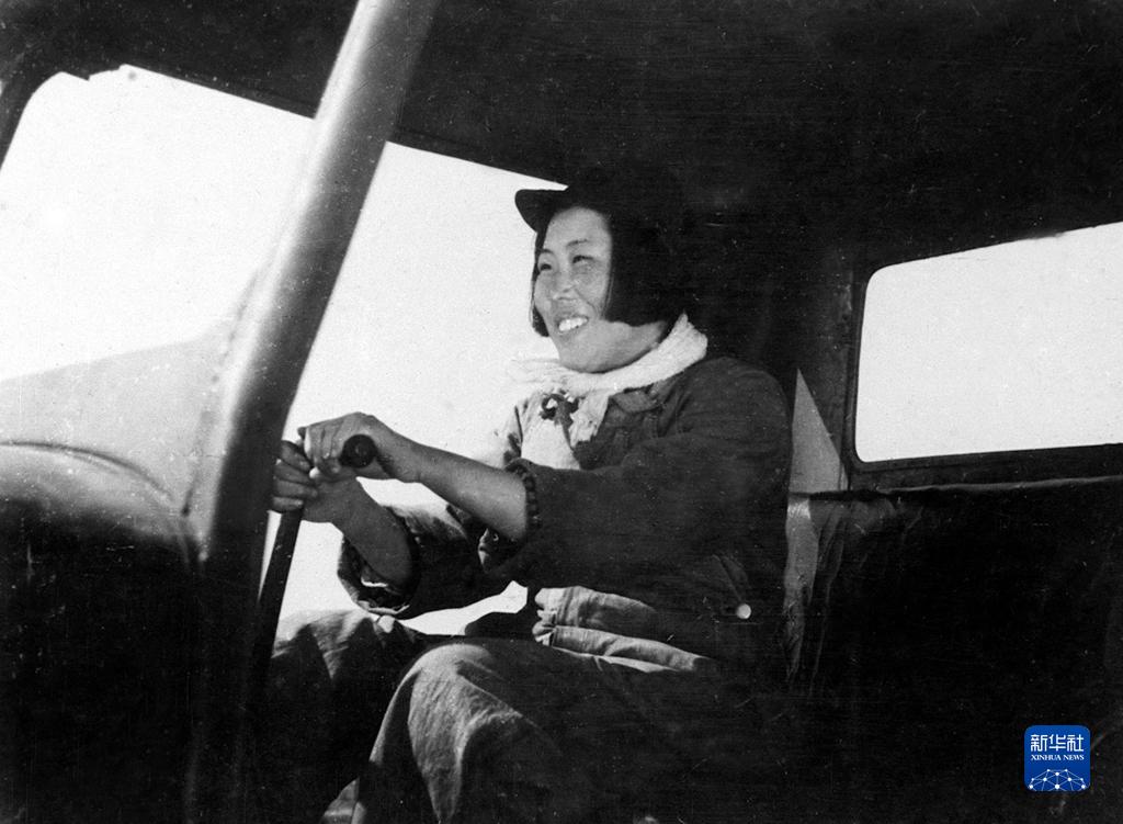 這是梁軍在駕駛拖拉機(1950年攝)。新華社發(fā)