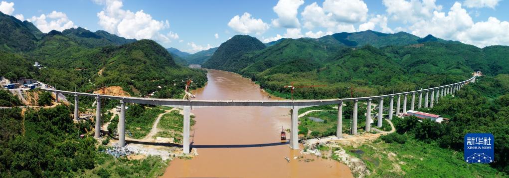 這是2020年7月24日在老撾拍攝的中老鐵路班納漢湄公河特大橋(無人機照片)。新華社發(fā)(潘龍柱 攝)