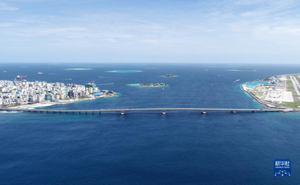這是2019年8月30日拍攝的由中國援建的馬爾代夫中馬友誼大橋(無人機照片)。新華社發(fā)(王明亮攝)