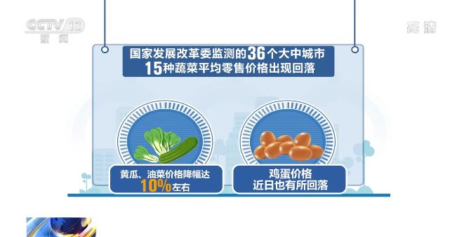 目前,國家發(fā)展改革委監(jiān)測的36個(gè)大中城市15種蔬菜平均零售價(jià)格出現(xiàn)回落,其中黃瓜、油菜價(jià)格降幅達(dá)10%左右,同時(shí),雞蛋價(jià)格近日也有所回落。