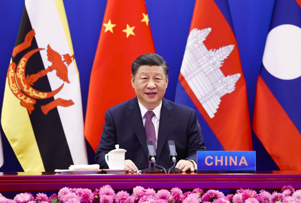 ↑11月22日上午,國家主席習(xí)近平在北京以視頻方式出席并主持中國—東盟建立對話關(guān)系30周年紀(jì)念峰會,發(fā)表題為《命運與共 共建家園》的重要講話。中國東盟正式宣布建立中國東盟全面戰(zhàn)略伙伴關(guān)系。