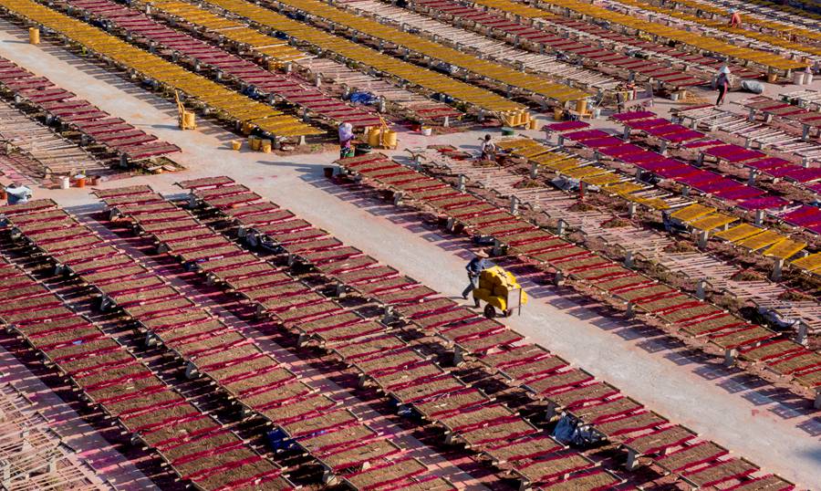 歲末,閩南及東南亞地區(qū)進(jìn)入用香旺季,趁著連日來(lái)的大晴天,泉州永春縣達(dá)埔鎮(zhèn)各香廠的工人們正忙著曬香,迎接銷售旺季到來(lái)。