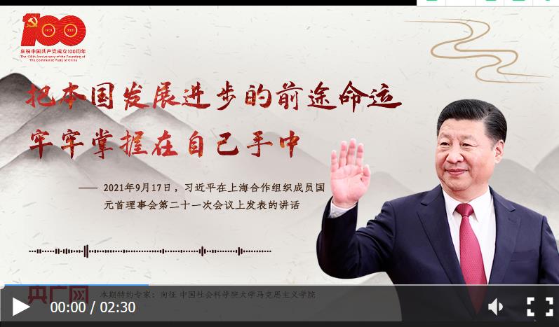 這段話出自2021年9月17日習(xí)近平在上海合作組織成員國(guó)元首理事會(huì)第二十一次會(huì)議上發(fā)表的講話。