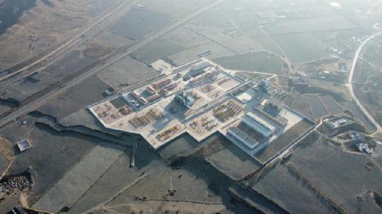 位于騰格里沙漠邊緣的“西氣東輸”中衛(wèi)壓氣站(無人機(jī)拍攝,新華社記者靳赫 攝)