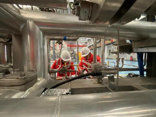 壓縮機(jī)組是天然氣管網(wǎng)的“心臟”。記者走進(jìn)場站“西三線”區(qū)域看到,4名技術(shù)人員正在對壓縮機(jī)組進(jìn)行檢修!敖冢覀兗哟罅巳媾挪闄C(jī)組風(fēng)險隱患的力度,開展預(yù)防性維護(hù)保養(yǎng),就是為了不斷提高壓縮機(jī)組運行的可靠性!敝行l(wèi)壓氣站技術(shù)員鄭雙杰說。