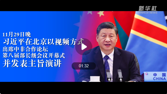 11月29日晚,國家主席習近平在北京以視頻方式出席中非合作論壇第八屆部長級會議開幕式。習近平發(fā)表主旨演講。