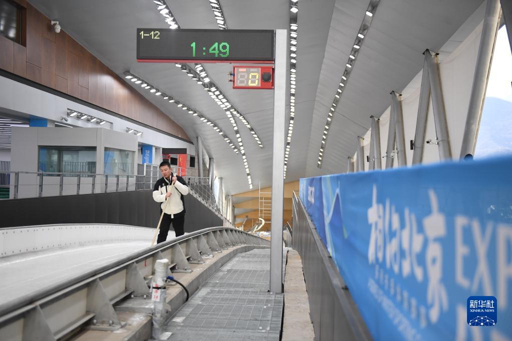2021年1月27日,朱永濤在清掃冰面。新華社記者 張晨霖 攝