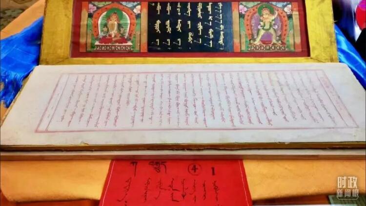 △《甘珠爾經(jīng)》是研究佛學(xué)、哲學(xué)、語言、民族文化交流等方面的重要文獻(xiàn),被稱為蒙古文的百科全書。目前內(nèi)蒙古大學(xué)圖書館珍藏的版本,是世界上最完整的版本。(總臺(tái)央視記者張曉鵬拍攝)