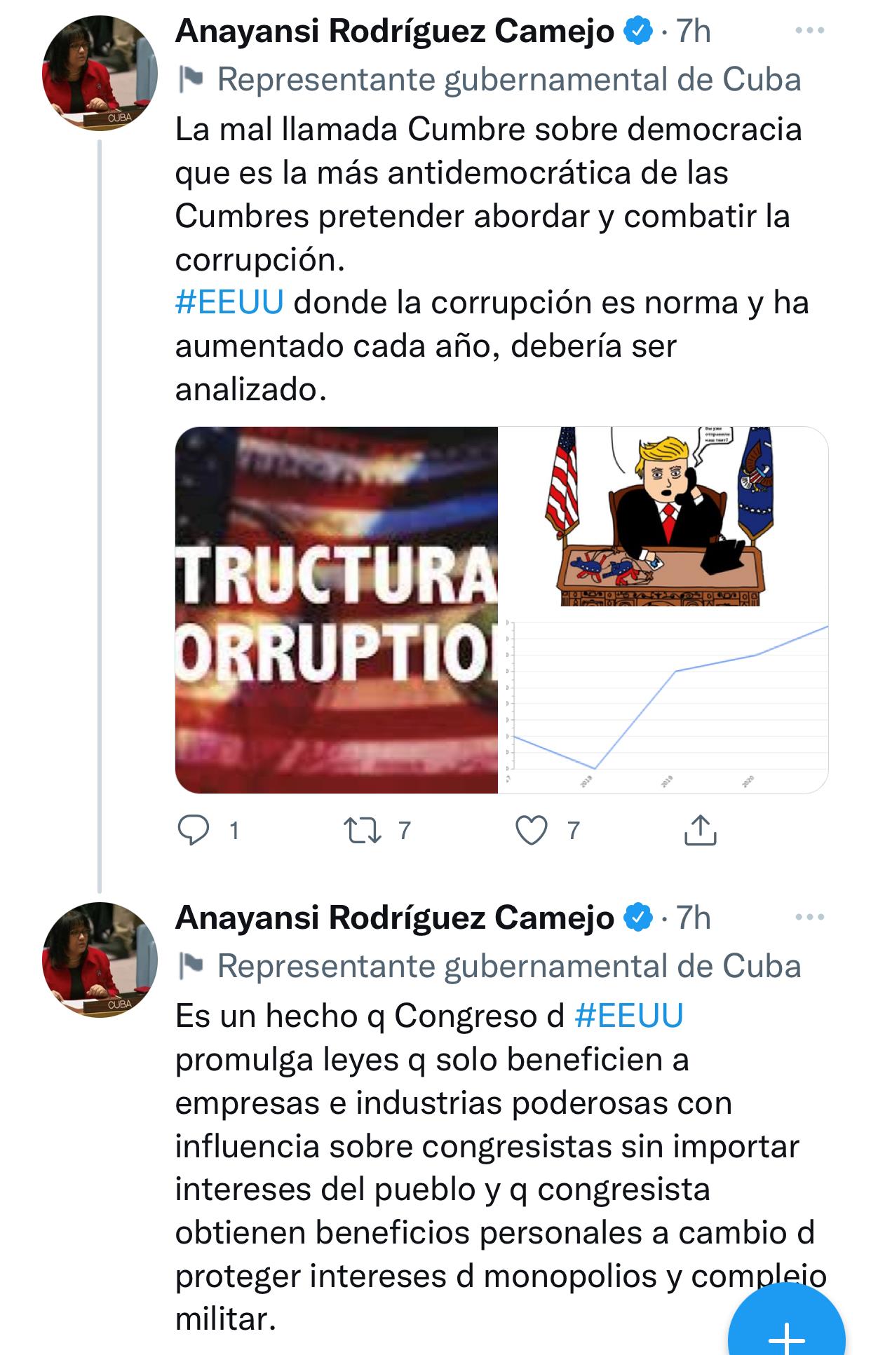 古巴外交部長布魯諾·羅德里格斯表示,美國在聯(lián)合國框架外舉行單邊的、有選擇性的峰會,是因為美國認識到自身在多邊組織中處于孤立狀態(tài),無法在多邊組織中向別國強加“符合其自身狹隘戰(zhàn)略利益的價值觀和規(guī)則”。