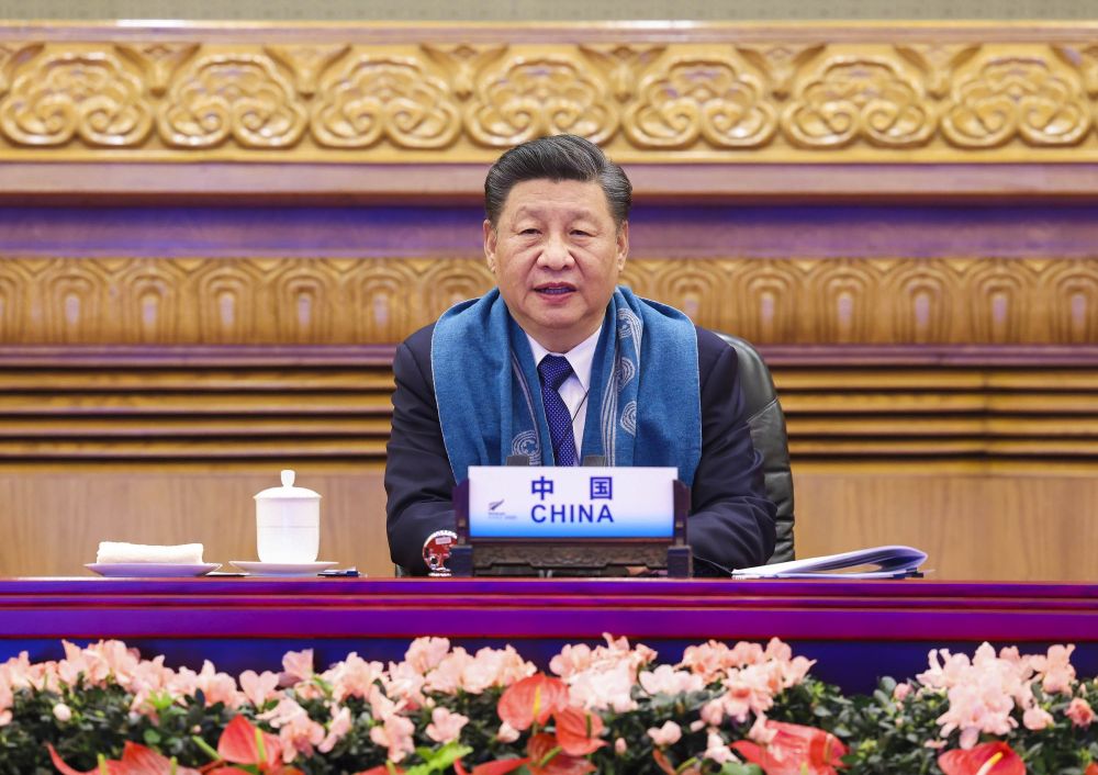 ↑ 2021年11月12日晚,國家主席習(xí)近平在北京以視頻方式出席亞太經(jīng)合組織第二十八次領(lǐng)導(dǎo)人非正式會議并發(fā)表重要講話。