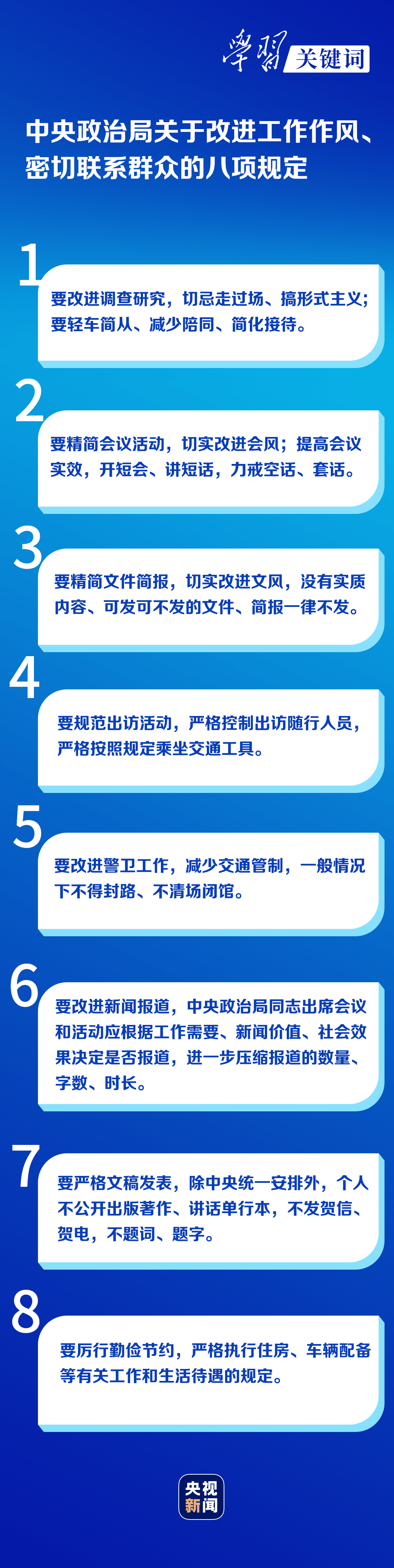 9年前的12月4日,中共中央政治局會議審議通過《十八屆中央政治局關(guān)于改進(jìn)工作作風(fēng)、密切聯(lián)系群眾的八項規(guī)定》,即“中央八項規(guī)定”。