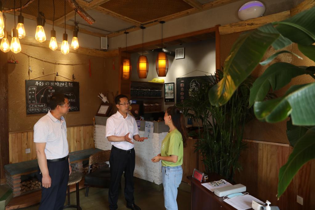 7月2日,在沈陽市沈北新區(qū)興隆臺街道單家村,聞然(中)在調研民宿發(fā)展情況。新華社記者楊青攝