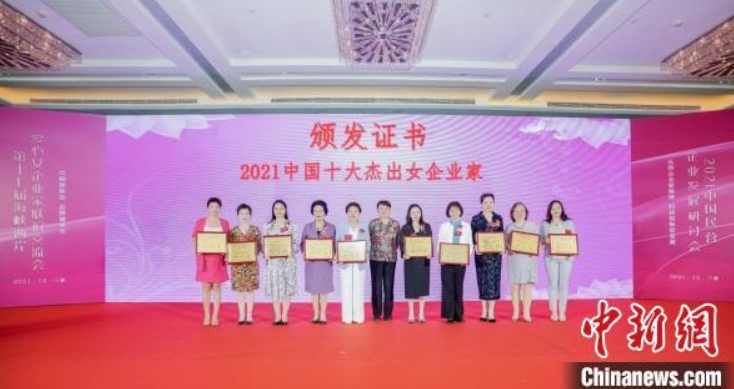 全國(guó)政協(xié)原副主席張梅穎18日為2021中國(guó)十大杰出女企業(yè)家頒發(fā)獎(jiǎng)牌!£惒āz
