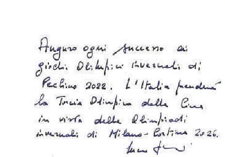 祝愿北京2022年冬奧會(huì)圓滿成功。意大利將從中國手中接過奧運(yùn)圣火,籌備2026年米蘭/科爾蒂納丹佩佐冬奧會(huì)!綖懸