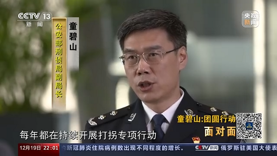 公安部刑偵局副局長 童碧山:我覺得通過今年一年的專項行動,我們在打法上在技術(shù)上在工作機制上都更加成熟,可以把它固化下來,把它作為一個常態(tài)化的工作,要一直延續(xù)下去,早日實現(xiàn)天下無拐的目標(biāo)。