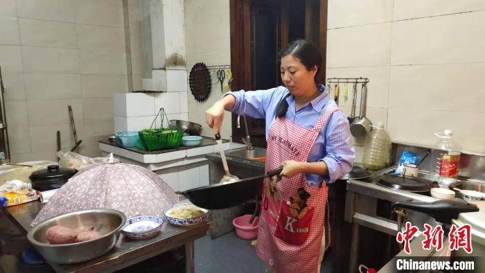 阿芬在其民宿里做飯!″X晨菲 攝