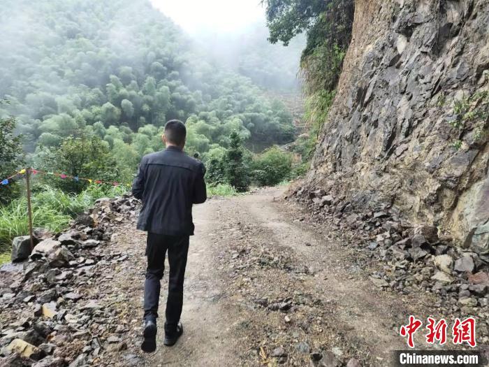 因?yàn)檫B通各自然村的道路還未完全修好,村干部走訪村民只能步行前往。