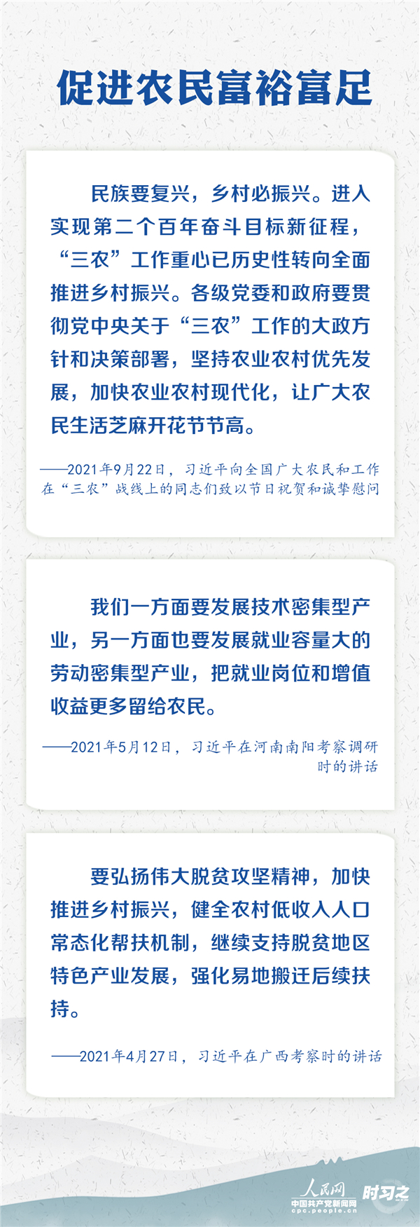 “十四五”開(kāi)局之年,習(xí)近平赴地方考察調(diào)研及參加座談會(huì)時(shí),多次發(fā)表重要講話(huà)、作出重要指示,始終引領(lǐng)著“三農(nóng)”工作的重心與方向。