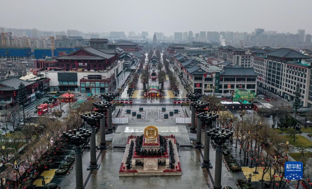 12月25日,封閉后的西安市大唐不夜城一片寧靜(無人機照片)。