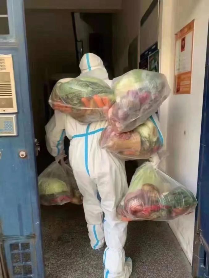 給小區(qū)居民分發(fā)物資