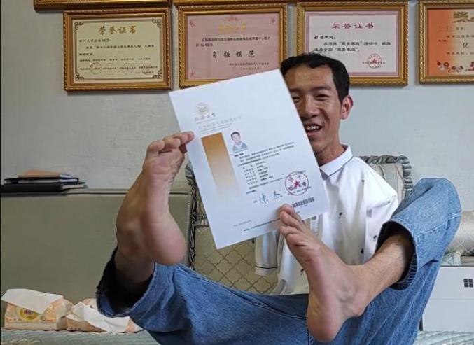 彭超用腳書寫了熱血人生