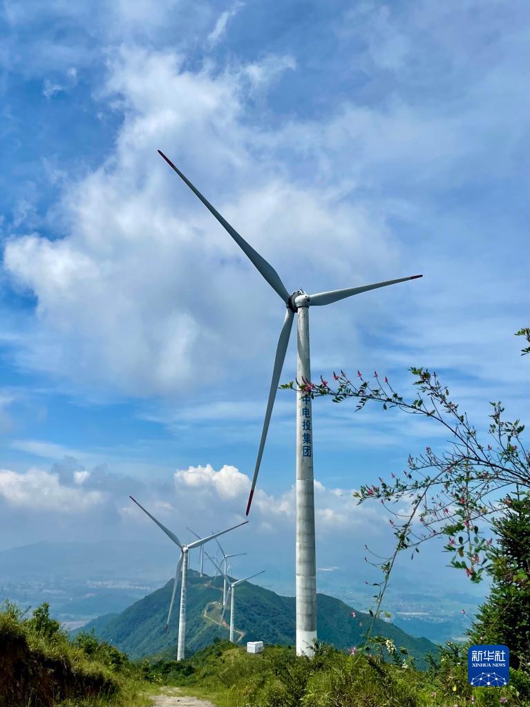 這是在湖南省汝城縣拍攝的風(fēng)力發(fā)電機(jī)(8月23日攝)。新華社記者 蘇曉洲 攝