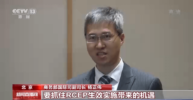 商務(wù)部國際司副司長 楊正偉:RCEP還將促進(jìn)區(qū)域貿(mào)易投資增長,優(yōu)化區(qū)域分工合作,加強(qiáng)區(qū)域產(chǎn)業(yè)鏈供應(yīng)鏈,對(duì)我國穩(wěn)外貿(mào)穩(wěn)外資具有重要意義。