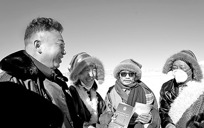 青海省果洛藏族自治州瑪多縣人民法院法官(左一)為群眾普及法律知識(shí)。新華社發(fā)