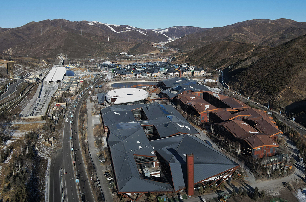 在崇禮冬奧核心區(qū)的古楊樹場(chǎng)館群中,一柄“如意”雄踞雪原;在這個(gè)國(guó)家跳臺(tái)滑雪中心面前的兩側(cè)山谷,國(guó)家越野滑雪中心和國(guó)家冬季兩項(xiàng)中心坐落其間;“冰玉環(huán)”將三者綴珠成串。不遠(yuǎn)處,云頂場(chǎng)館群隔山相望。