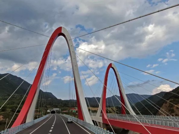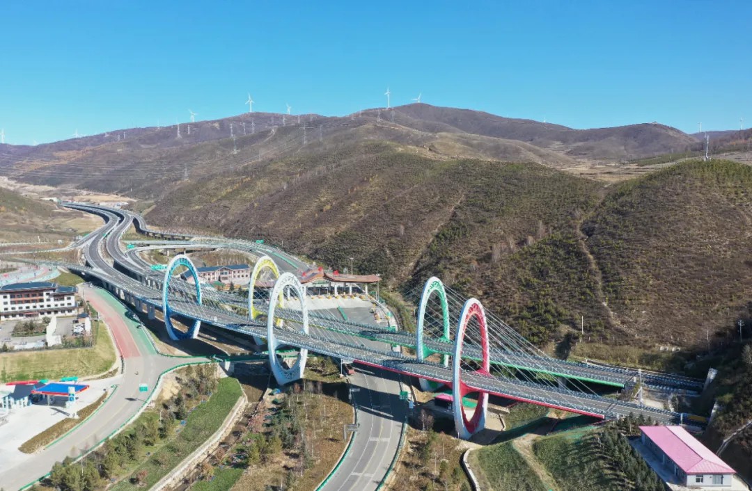 進(jìn)入延崇高速河北段主線,迎冬奧氛圍撲面而來。圖為“奧運之門”——杏林堡大橋。(河北省交通運輸廳供圖)